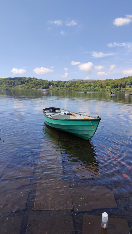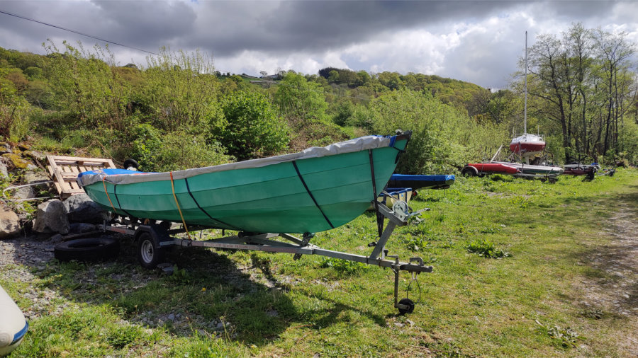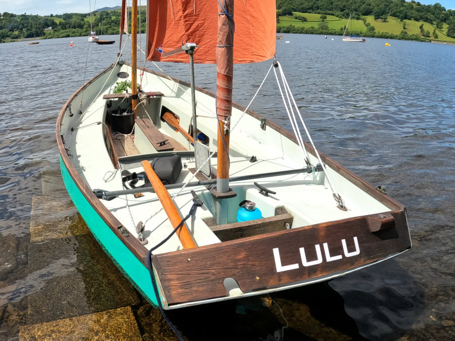 Lulu is a MK2 1984 Drascombe Lugger. She’s in original colour spec with Green Gelcoat and duck egg blue deck. She’ll float in 10″ of water and can be launched in not much more.